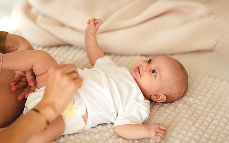 Thay tã cho bé thường xuyên, khoảng 2-3 tiếng một lần hoặc khi bỉm đầy