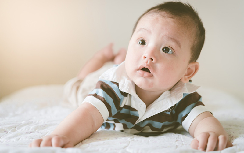 - Lăn người: Trẻ bắt đầu lăn từ tư thế nằm ngửa sang nằm sấp và ngược lại.