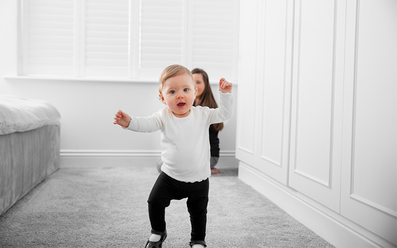 - Tập đi: Trẻ bắt đầu tập đi bằng cách giữ vào vật dụng hoặc tay của người lớn.